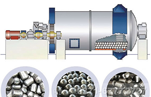 球磨機(jī)工作時主要是利用研磨體在磨倉內(nèi)隨著筒體的回轉(zhuǎn)而對物料進(jìn)行撞擊,致使物料被研磨成粉。球磨機(jī)的筒體為長形圓筒,筒內(nèi)裝有研磨體,研磨體一般為鋼制圓球,并按不同直徑和一定比例裝入筒中,研磨體也可用鋼段。根據(jù)研磨物料的粒度加以選擇,物料由球磨機(jī)進(jìn)料端空心軸裝入筒體內(nèi),當(dāng)球磨機(jī)筒體轉(zhuǎn)動時候,研磨體由于慣性和離心力作用,摩擦力的作用,使它附在筒體襯板上被筒體帶走,當(dāng)被帶到一定的高度時候,由于其本身的重力作用而被拋落,下落的研磨體像拋射體一樣將筒體內(nèi)的物料給擊碎。